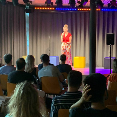 Gestern war die letzte Ausgabe Stand-Up Comedy #openmic von der @comedyfactoryfreiburg im @zuka.solicafe. Danke an Melanie, Sofia, Sanket, Anfisa, Xin, Prem, Bijay für ihre Acts. Wir sehen uns wieder am 12. September - und wer Lust hat selbst zu performen, kann am 8. September an dem Workshop teilnehmen: Anfänger*innen sind sehr willkommen. Hier geht es zur Anmeldung: https://zlev.de/home/events/comedy-workshop20240908
