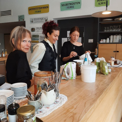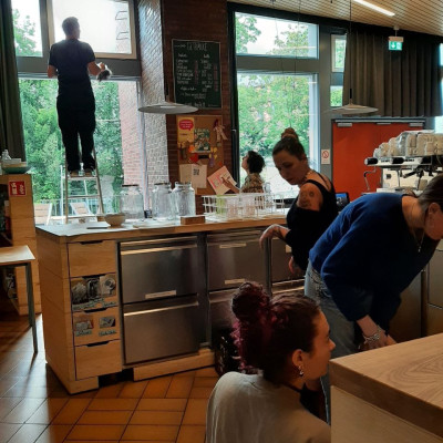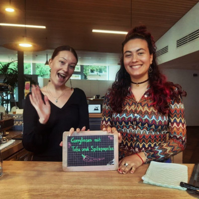 Hier bieten wir Montag bis Donnerstag einen sozial-ökologischen Mittagstisch mit einem solidarischen Preissystem an. Das Essen ist immer vegetarisch, oft vegan und unser Gemüse ist lokal und saisonal. Bei uns können auch Caterings gebucht werden.