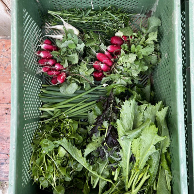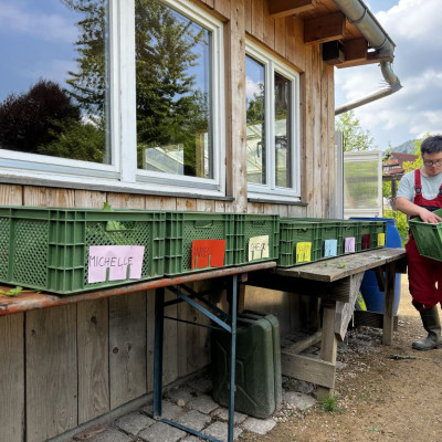 Langsam aber sicher wird das Gemüse, das wir im Rahmen unseres Beschäftigungsangebotes für junge Menschen mit Behinderung im #Gemeinschaftsgarten anbauen, erntereif und die acht solidarischen #Gemüsekisten füllen sich jede Woche mit Salat, Knoblauch, verschiedenen Kräutern und essbaren Blüten.
