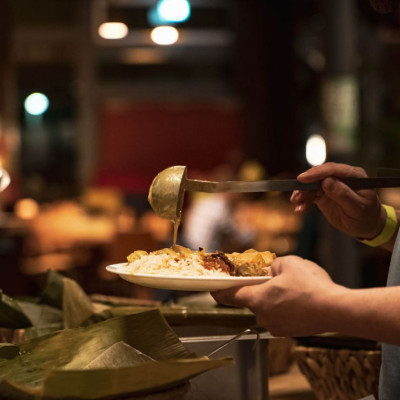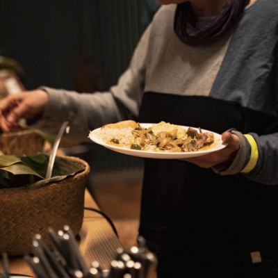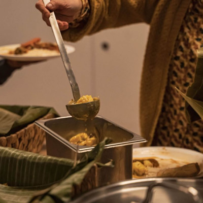 Das Team des @afrofusionbuffet um Rufine Songué, Roubama Baba-Traoré, Ange Gaelle Songué und Stéphanie Ntsana kochten sich ganz nach dem Motto: „Liebe geht durch den Magen" in die Herzen der Besucher* innen. Am All-You-Can-Eat Buffet konnten verschiedenen Spezialitäten, die oft eng mit der Geschichte der Gegend und den Menschen dort verknüpft sind, kennen und lieben gelernt werden. Und auch für Musik war gesorgt!