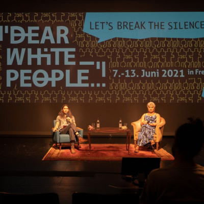 Das rassismuskritische "Dear White People..." Festival (DWP) mit dem diesjährigen Motto "Let's Break the Silence!" zielt auch im 3. Jahr darauf ab, strukturellen Rassismus sichtbar zu machen, Räume zu öffnen und niemanden zu silencen. Das ehrenamtliche 16-köpfige Kuratorium, mehrheitlich BIPoC, kuratierte in diesem Jahr 44 Veranstaltungen mit rund 60 Referentinnen in 15 (Kultur-)Institutionen in Kooperation mit 36 lokalen wie auch überregionalen Partner*innen.