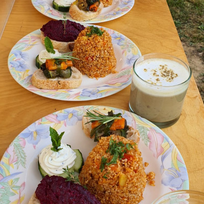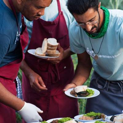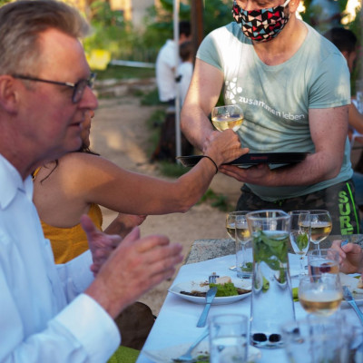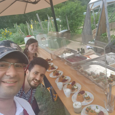 Endlich zeigen, was gelernt wurde! Unter diesem Motto wurde für die Qualfizierung in der Gastro "zusammen in die Zukunft" am Sonntag zum großen bioregionalen Eventdinner geladen. Im Gemeinschaftsgarten durfte das 3-Gängemenü unter wundervollem Einsatz aller Teilnehmenden der Quali genüßlich geschmaust werden.