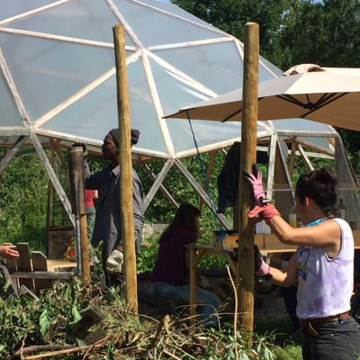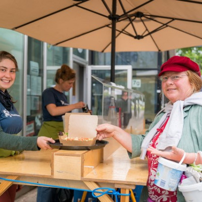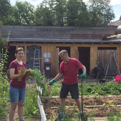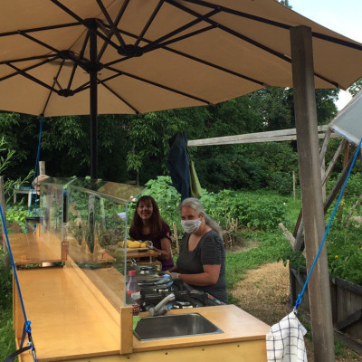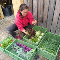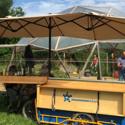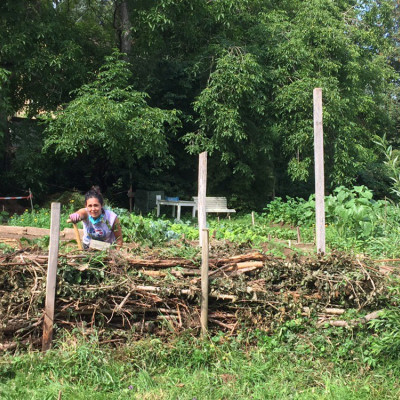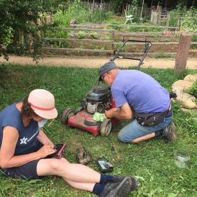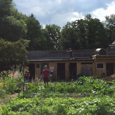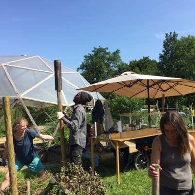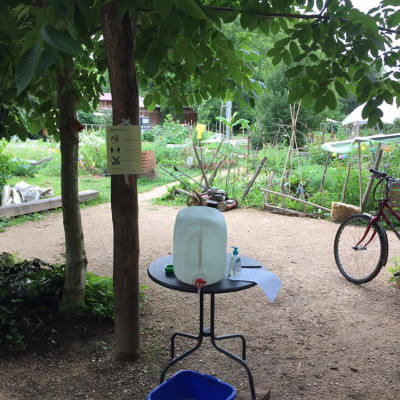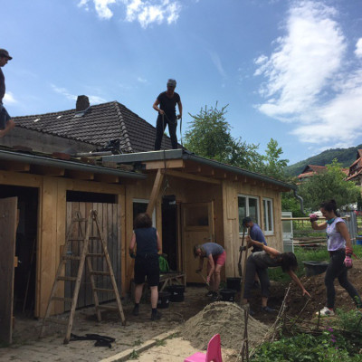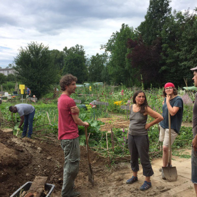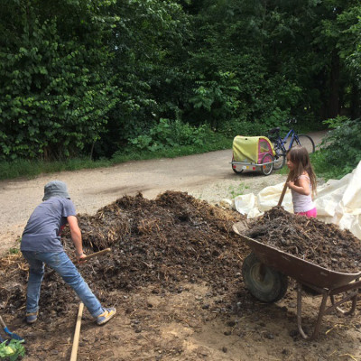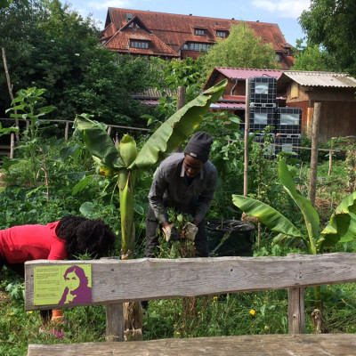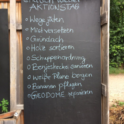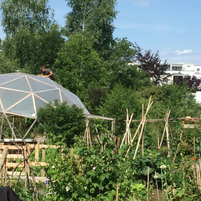 War das schön, endlich wieder zusammen im Gemeinschaftsgarten zu arbeiten! Unglaublich, wieviel man/frau an einem Tag gemeinsam bewegen kann: Wir haben unser Schuppendach begrünt, unsere Bananen geplegt (jaa, dieses Jahr haben wir Bananenblüten!), Gemüse geerntet und an der MuFuKü verkocht, die Benjeshecke neu gepflöckt, das Dach des Geodomes repariert, Pferdemist versetzt, viel, viel, viel gejätet, gemäht und zusammen Mittag gegessen. Danke an alle, die da waren!