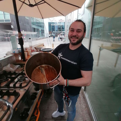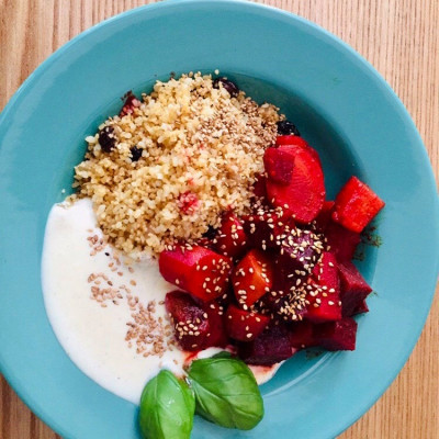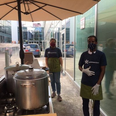 Lecker to go im "zusammen kaffee" - und abends dann an der Bahnhofsmission für Menschen ohne Wohnung: Gemüsetajine mit Couscous, Zitronenjoghurt und Sesam 😋