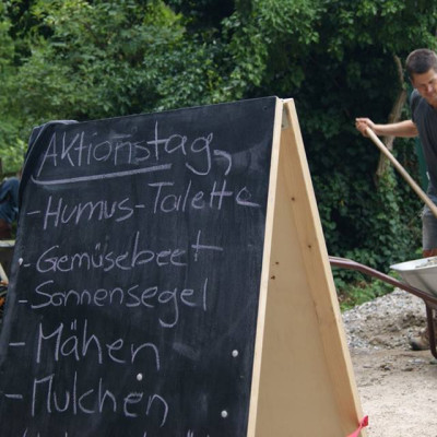 Wunderbar eingespielt nach nur einem Jahr zusammen gärtnern: Heute haben wir eine neue Kompostkammer gebaut, in den Beeten gejätet und gemulcht, an der Humustoilete weiter gebaut, unsere neue Spendenstele einbetoniert, den Beeren-Garten freigelegt und einen leckeren Eintopf mit Mangold aus unserem Gemüsebeet gekocht!