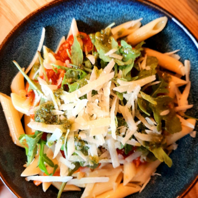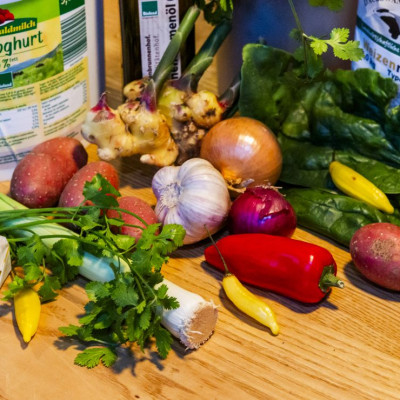 Die Idee: Leckere internationale Gerichte mit regionalen und saisonalen Zutaten zu einer vegetarischen Freiburger Variante umbauen. Für einen kleineren CO2 Fußabdruck, um herauszufinden und zu zeigen, was unsere Region produziert bzw produzieren könnte. Und für eine große Vielfalt in der Esskultur. Das Gericht spart pro Portion - im Vergleich zum Durchschnitt aus Gerichten gleichen Nährwerts - 862 g CO2 ein.