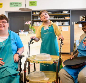 Im zuka solicafé bieten wir Jugendlichen und jungen Erwachsenen mit Behinderungen zwischen 13 und 27 Jahren die Möglichkeit, die Arbeitswelt der Gastronomie kennenzulernen: Sie können sich sowohl im Service wie auch hinter der Theke orientieren. Ohne Druck und im eigenen Tempo werden zentrale Kenntnisse und Fertigkeiten wie Gäste begrüßen, Bestellungen aufnehmen, Café zubereiten, Kuchen backen, Getränke einschenken und reichen, Teller und Tabletts tragen, Bedienung der Kasse, Tische abwischen, Lager auffüllen oder einkaufen erlernt.