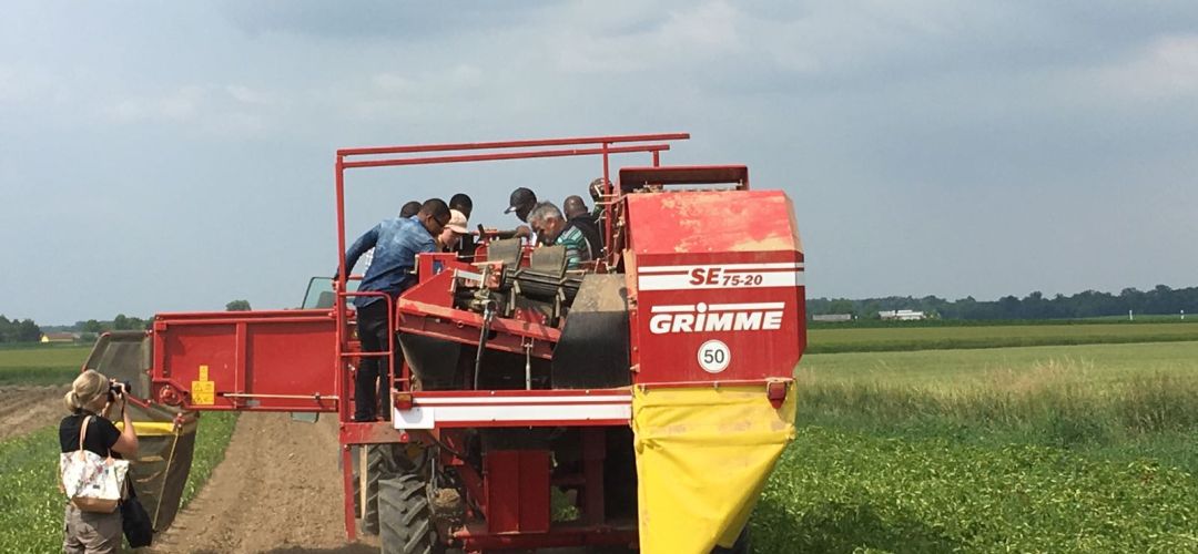 Am Beispiel der Kartoffel wurden praktisch mit Bewohnern der Freiburger Landeserstaufnahme und Studierenden der Universität Freiburg Themen wie Ernährung und Ernährungssouveränität in der Stadt erarbeitet: So haben wir im Stadtraum Kartoffeln in ökologischer Vier-Felder-Wirtschaft angebaut (mit Soya, Bohnen und Weizen) sowie die Felder gepflegt und geerntet. In Kooperation mit dem Lindenbrunnenhof in Forchheim haben wir uns praktisch wie theoretisch in drei Workshops auf dem Lindenbrunnenhof Wissen über die Kulturgeschichte der Kartoffel, über den fachgerechten Anbau, über verschiedene Sorten, über Schädlinge sowie über Ernte und Lagerung angeeignet.