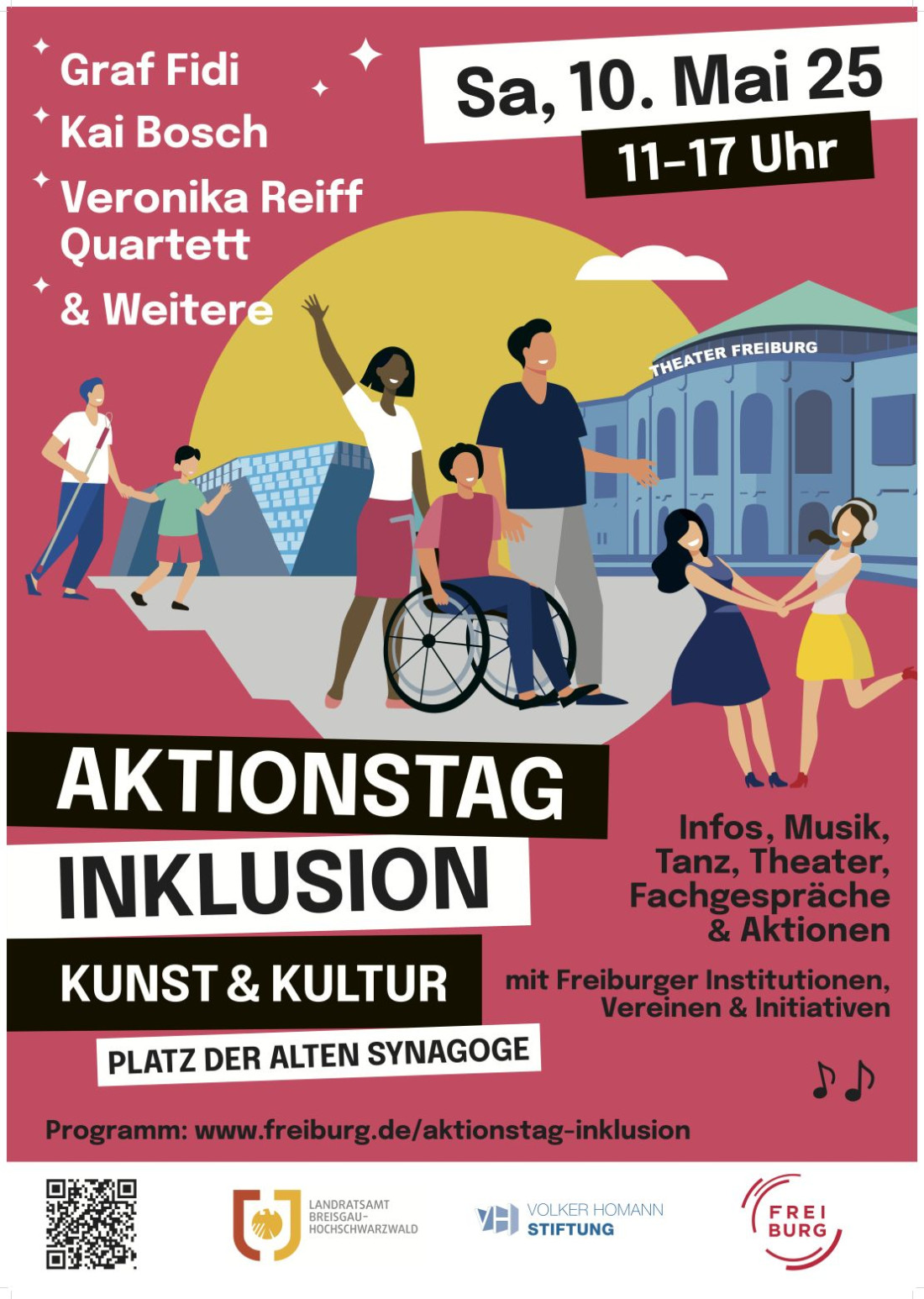Am Samstag, den 10. Mai 2025 ist es wieder soweit: Der Aktionstag Inklusion findet in Freiburg von 10:50 Uhr bis 17:00 Uhr statt und setzt im Rahmen des europäischen Protesttags zur Gleichstellung von Menschen mit Behinderung am 5. Mai ein deutliches Zeichen für die Rechte und die gleichwertige Teilhabe von Menschen mit Behinderung.