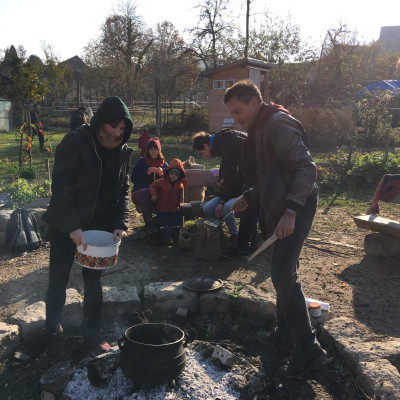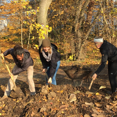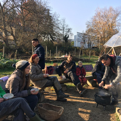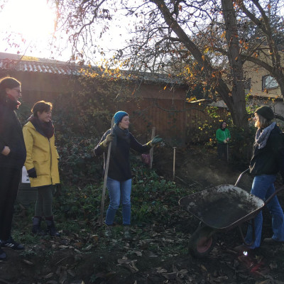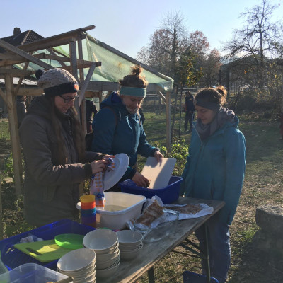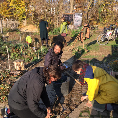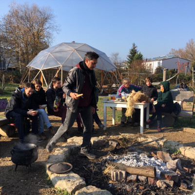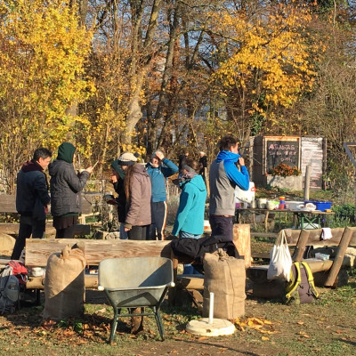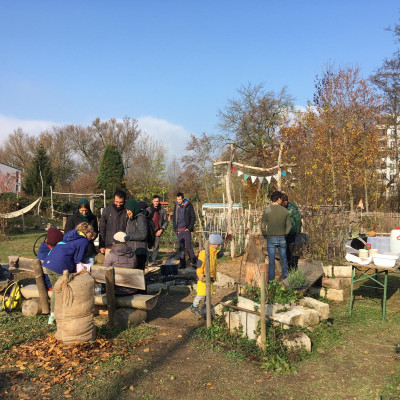 Wunderbar goldener Herbst an unserem letzten Aktionstag in diesem Jahr: Wir haben den Gemeinschaftsgarten winterfest gemacht, die Bananenstauden eingepackt, Geodome und Schuppen aufgeräumt, Werkzeug sortiert, gejätet, Wege in Stand gesetzt und über dem Feuer einen sehr leckeren Grünkohl-Süßkartoffeln mit unserem eigenen Gemüse gezaubert. Danke an alle für diese zauberhafte Gartensaison!