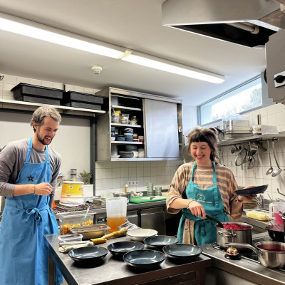 Hier bieten wir Montag bis Freitag einen sozial-ökologischen Mittagstisch mit einem solidarischen Preissystem an. Das Essen ist immer vegetarisch, oft vegan und unser Gemüse ist lokal und saisonal. Bei uns können auch Caterings gebucht werden.