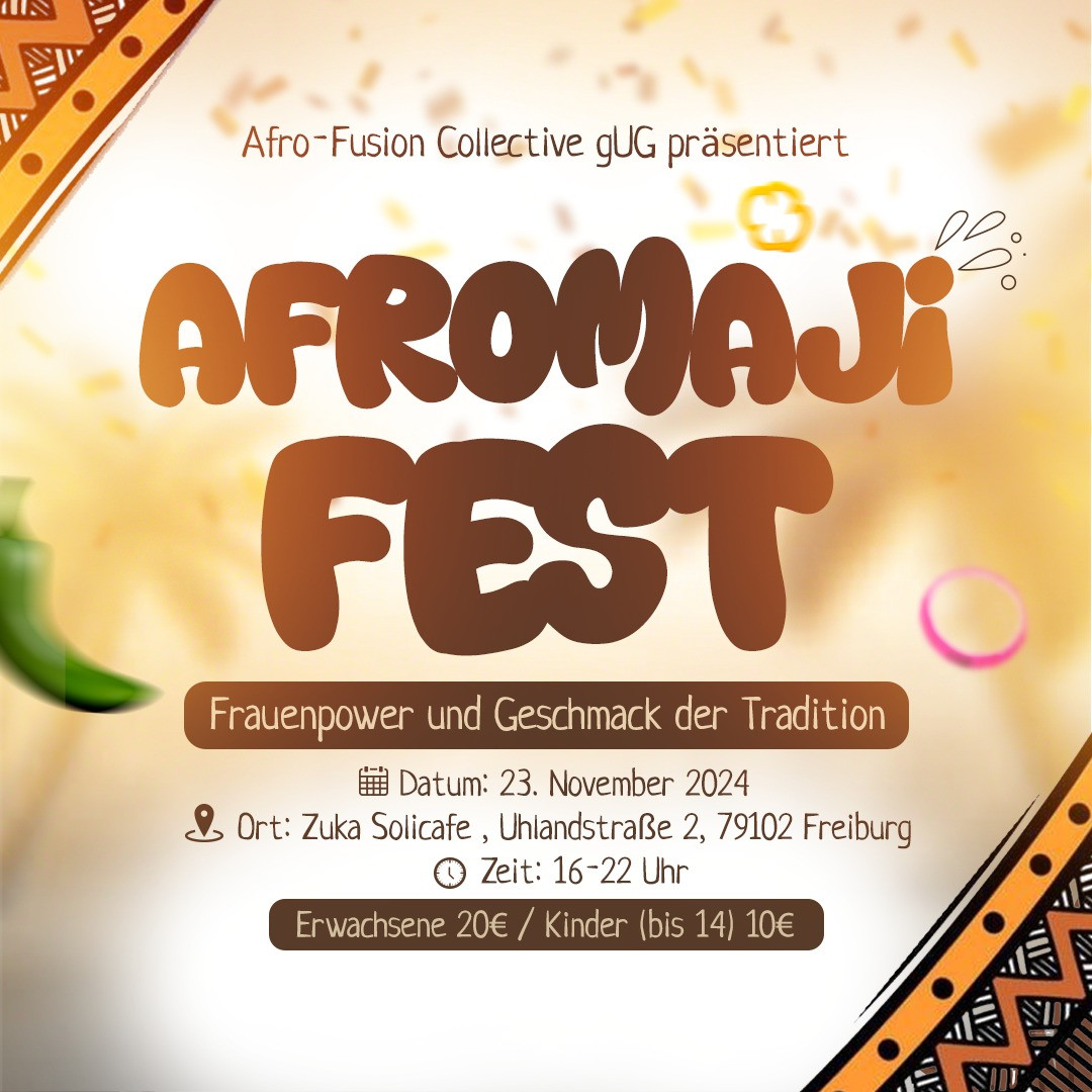 Afro-Fusion Collective lädt zum Afromaji Fest ein! Am 23. November stellt das Orgateam durch das kulinarische Event die Kraft und Tradition afrikanischer Frauen in den Mittelpunkt. Unter dem Motto „Frauen-Power und Tradition im Geschmack“ feiern wir die unglaubliche Vielfalt und Stärke der Frauen, die ihre Heimat verlassen haben und nun in Europa leben.
