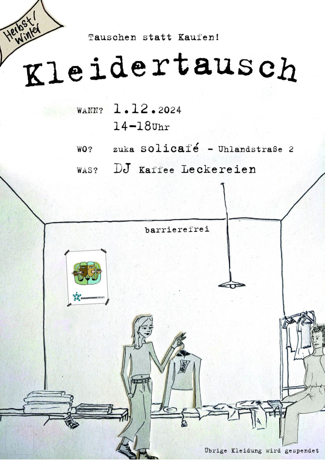 Bring zwischen 1 und 10 herbstliche/winterliche Kleidungsstücke, Schuhe oder Accessoires mit und tausche diese gegen neue Lieblingsklamotten ohne etwas zu zahlen.
