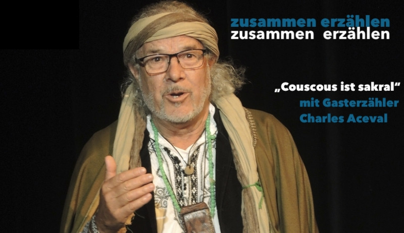 Komm und erzähle Geschichten aus Deinem Leben in kleinen Gruppen, höre unglaubliche Geschichten von Menschen, die Du vorher noch nie getroffen hast und lausche im Anschluss dem Erzähler Charles Aceval, während der Duft von Couscous und Pfefferminztee durch das zuka zieht: "Couscous ist sakral" ist der Titel seines Programmes.