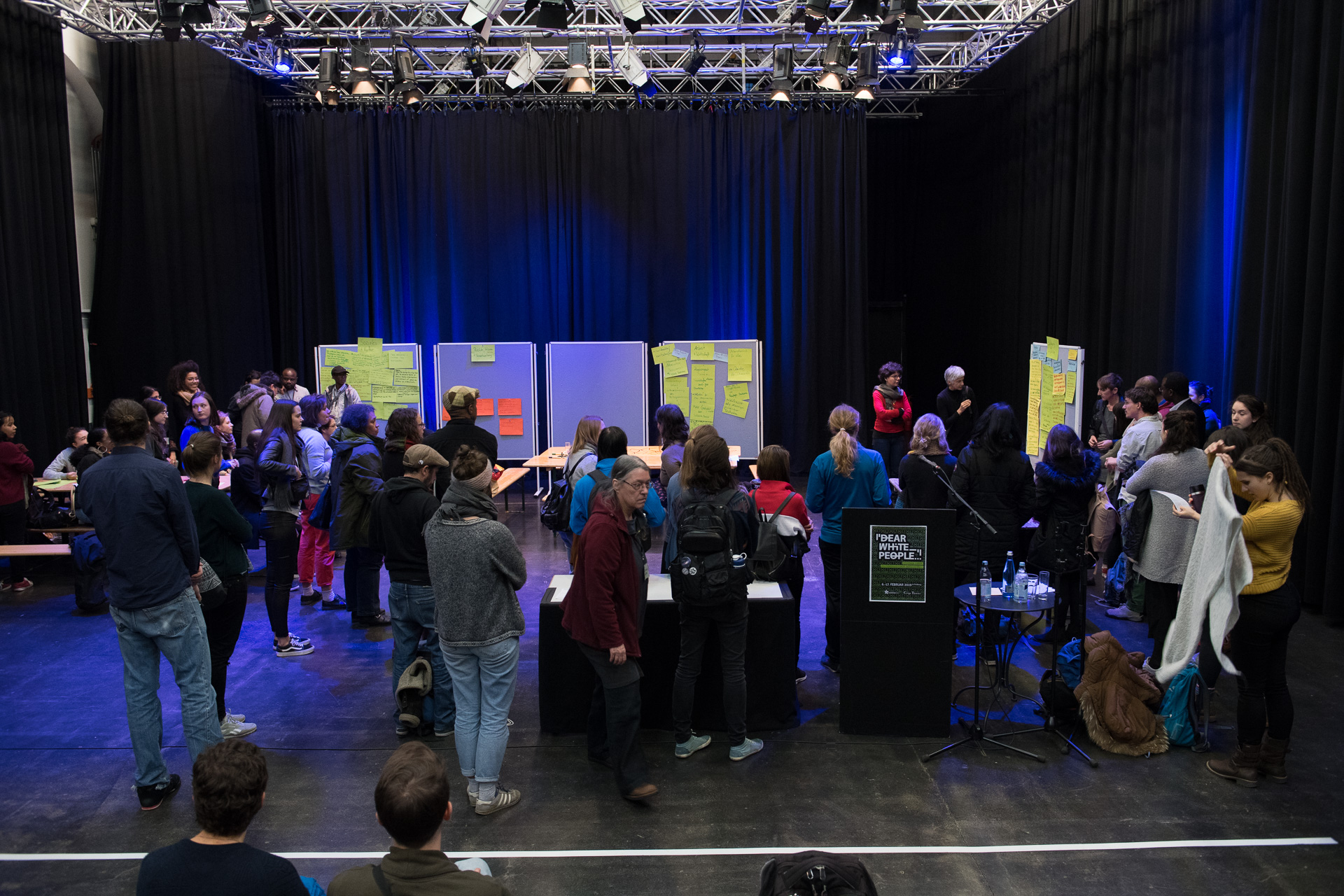 Gemeinsam blicken wir auf unsere Erfahrungen - während des Symposiums und anderswo. Anschließend umreißen wir die Konturen einer gesellschaftlichen Zukunft, in der es möglich wird, dass keine Beziehungen und sozialen Strukturen mehr von Rassismus bestimmt sind. Für verschiedene Bereiche entwerfen wir gemeinsam Konturen einer postrassistischen Stadtgesellschaft.