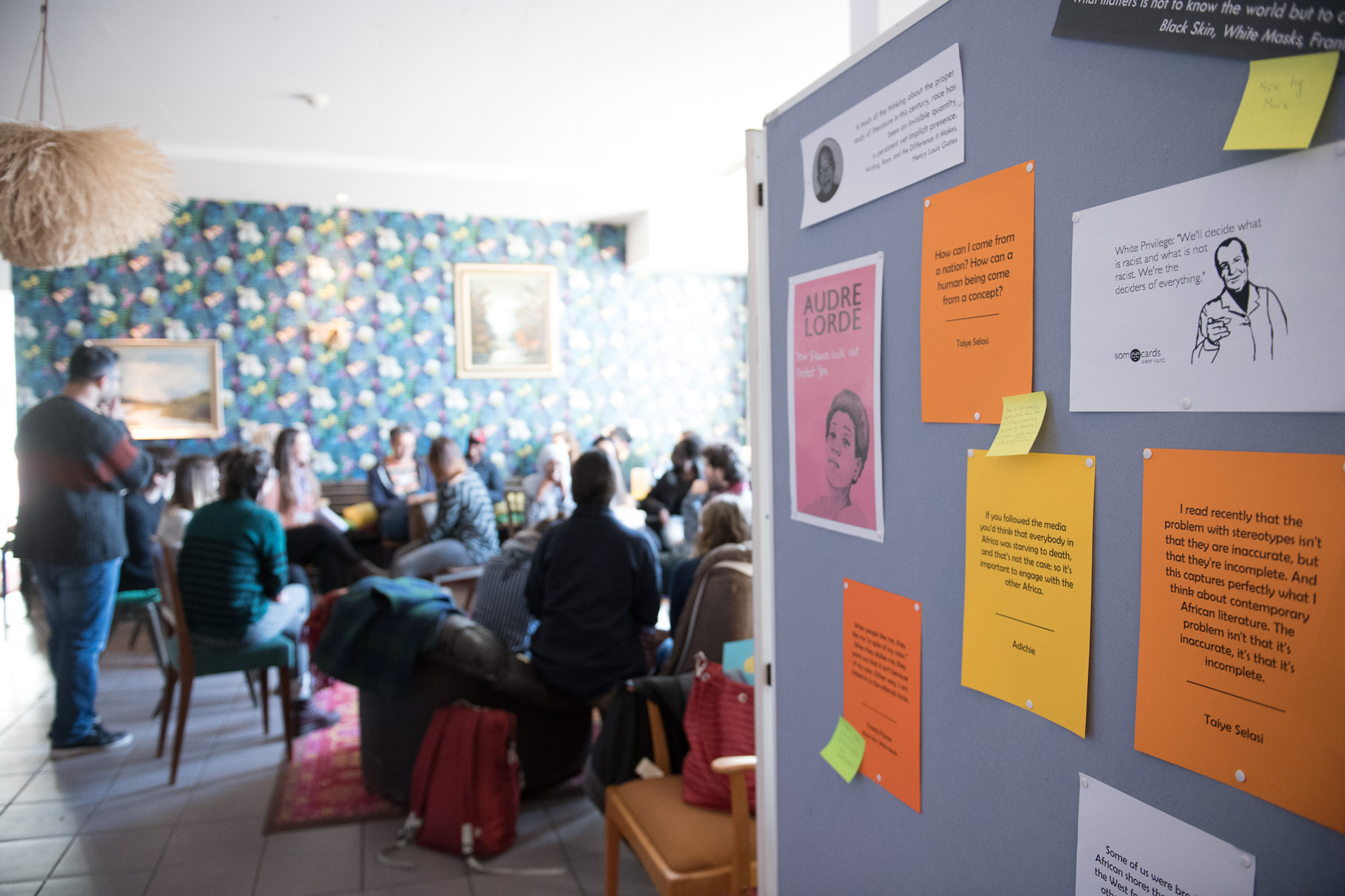 The workshop “Breaking the Silence,” organized by a number of graduate students of the English Seminar, University of Freiburg, started with essential questions as such. Discussing the role of silence in the construction of hybrid identities in the novels Ghana Must Go by Taiye Selasi, and Americanah by Chimamanda Ngozi Adichie was the central objective of the workshop. However, “Breaking the Silence” provided an opportunity for discussing not only the subject of hybrid identity in these novels, but also a variety of other topics close to the participants’ hearts. Walking through the workshop room, one could read the passages and quotes on the boards that the organizers had prepared. The interactive setting of the workshop sparked off a lively debate on participants’ own personal encounters with hardships as well as liberties they have experienced, whether as immigrants or as people with multiple backgrounds.