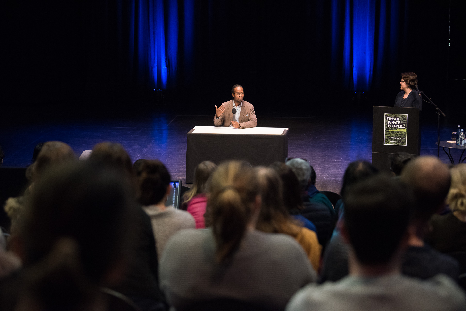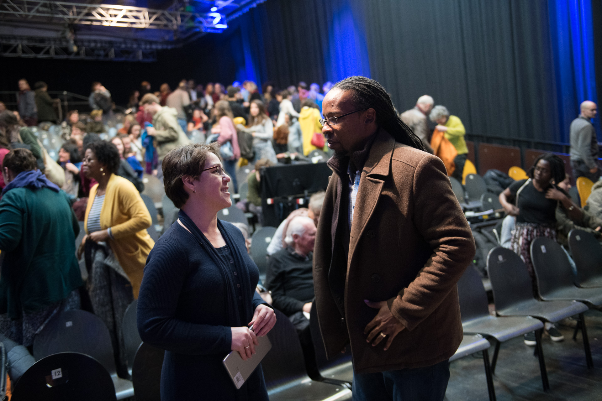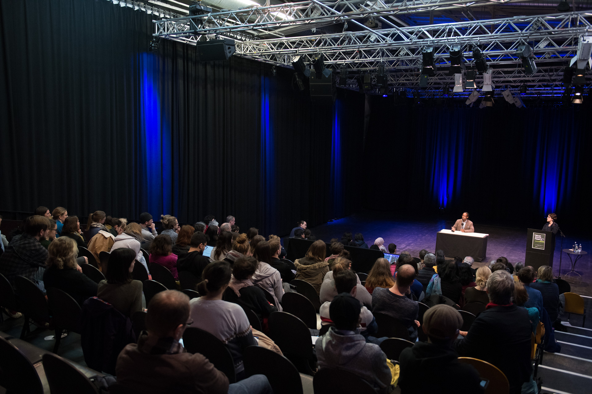 Kendis Rede endete mit einem solchen Aufruf und begeistertem Applaus. Darauf folgte eine eindrückliche Stunde mit Fragen und Antworten, in der er u.a. seine Definition des Begriffs „Rasse“ (s.u.), weitere Überlegungen zu gesellschaftlicher Diversität in Institutionen und Unternehmen, zu Fragen von ethnischer Identität und zu Politik und Systemkritik vorstellte. Nach einer weiteren Welle von Applaus verschwand er ebenso unscheinbar, wie er angekommen war.