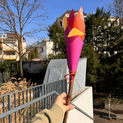 🎨 Passend dazu haben wir gemeinsam Papier-Fackeln gebastelt – ein Symbol für das Fest und für Licht, Neuanfang und Hoffnung ✨